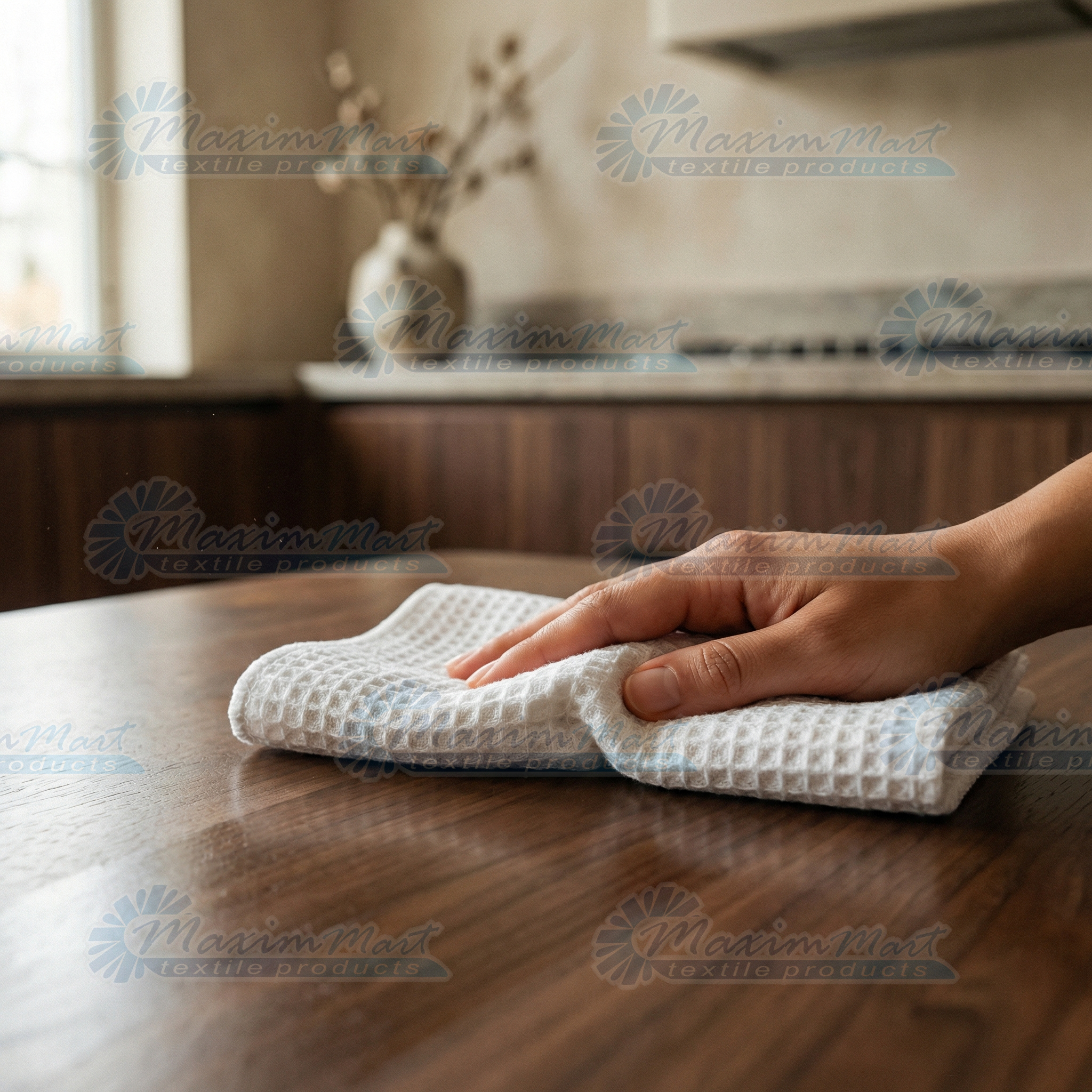 - The microfiber waffle weave is very commonly known throughout the microfiber industry. It is called a waffle weave because the towel has raised looped edges on the surface of the towel in the shape like that on a delicious Belgium Waffle. These “pockets” that are created hold water while the surface of the cloth stays dry making it an exceptional drying towel! The raised looped edges on this lint free towel make it great for all around use, while also being great on glass. Like other looped microfibers, they have an extended life compared to unlooped microfibers. This product is most commonly used in the automotive, cleaning and medical industries.