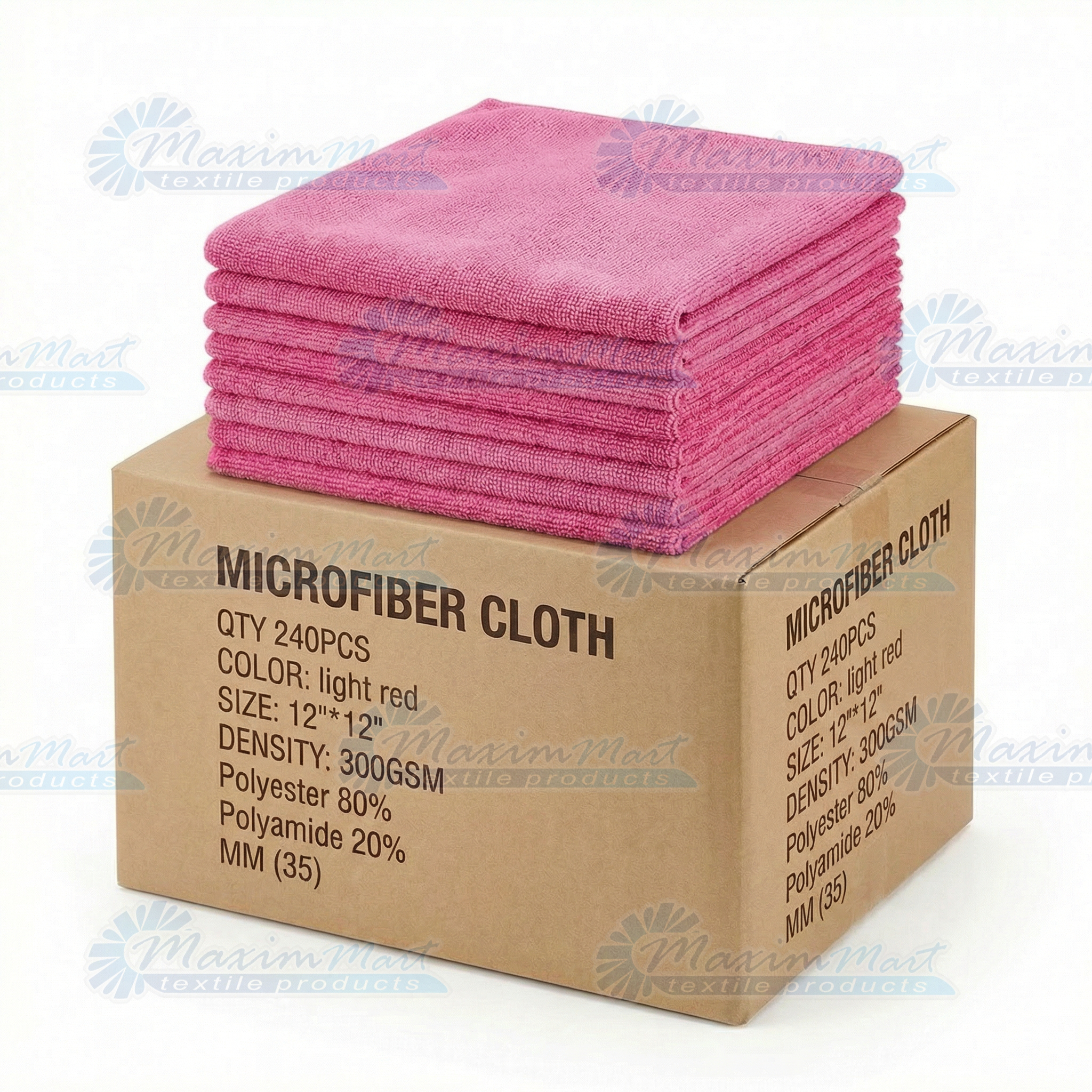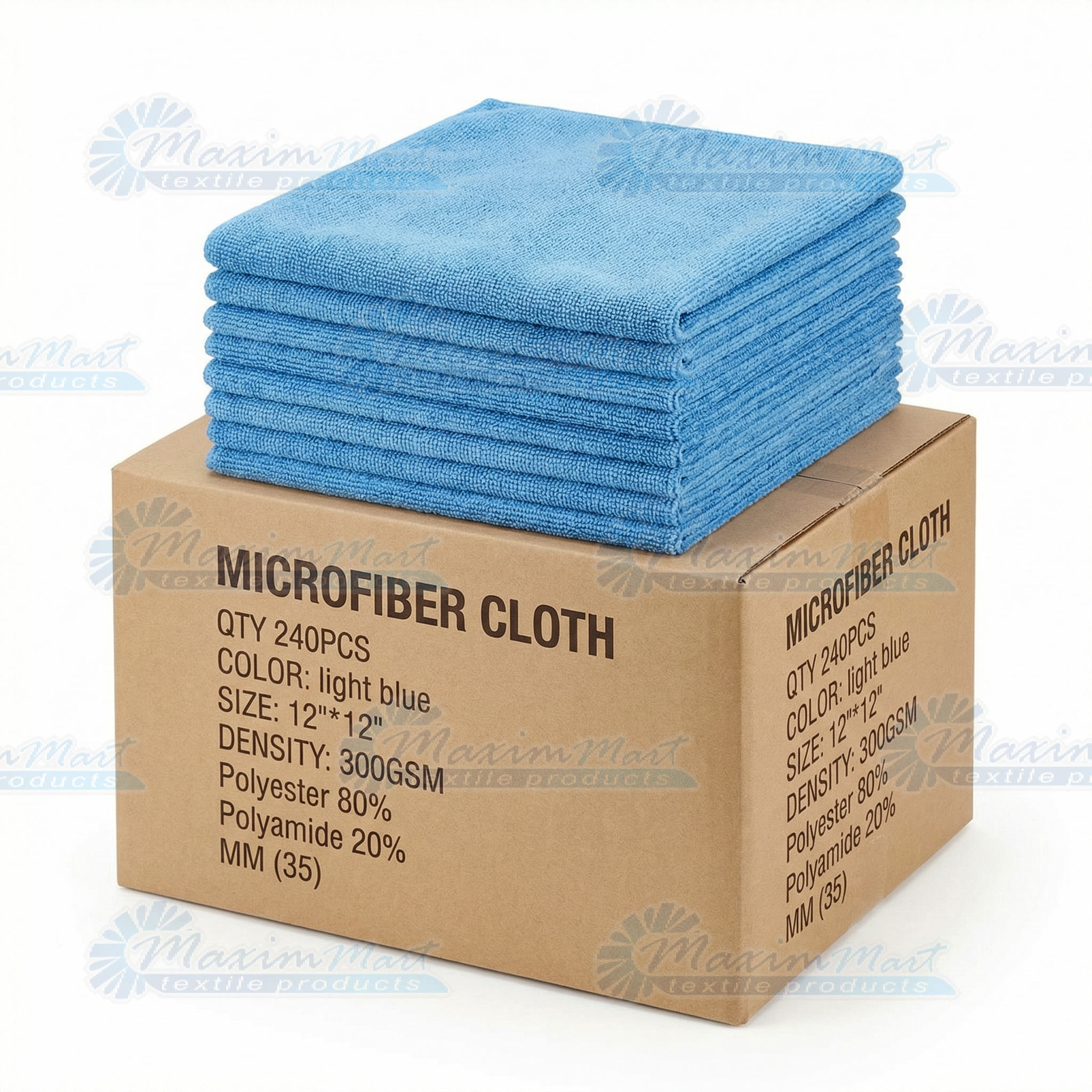 240 Ct. Box 12”x12” Microfiber Cloth, Professional Grade, 300GSM