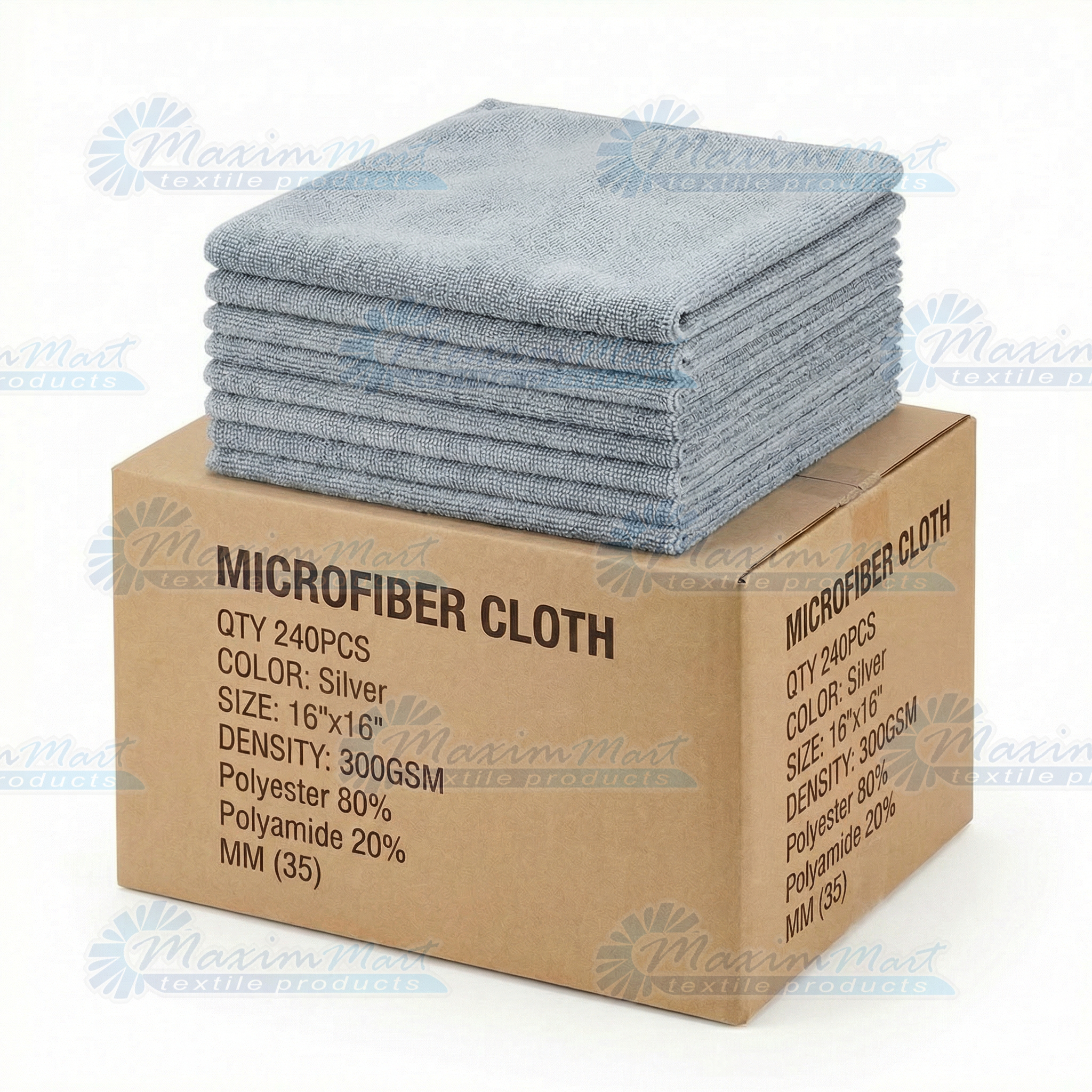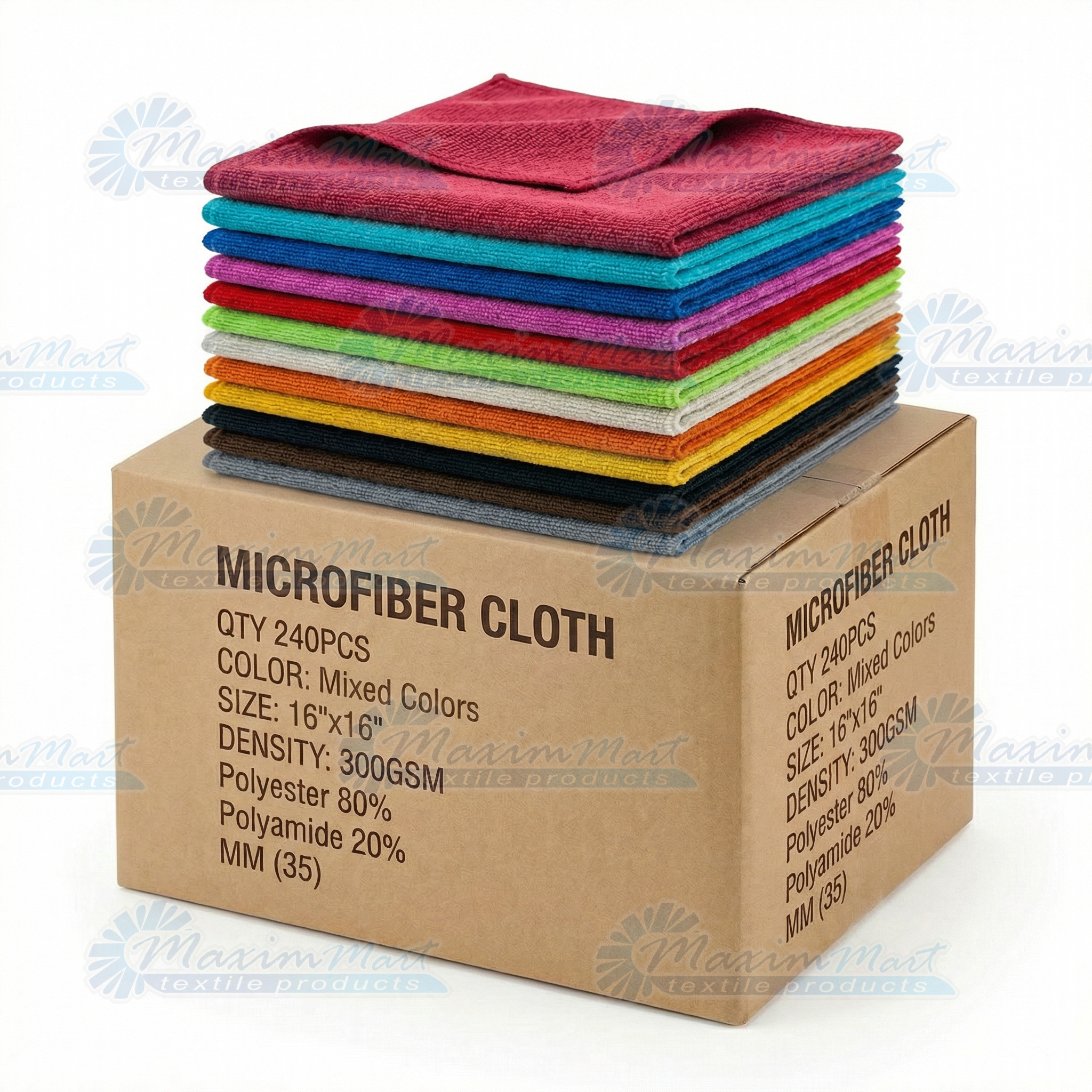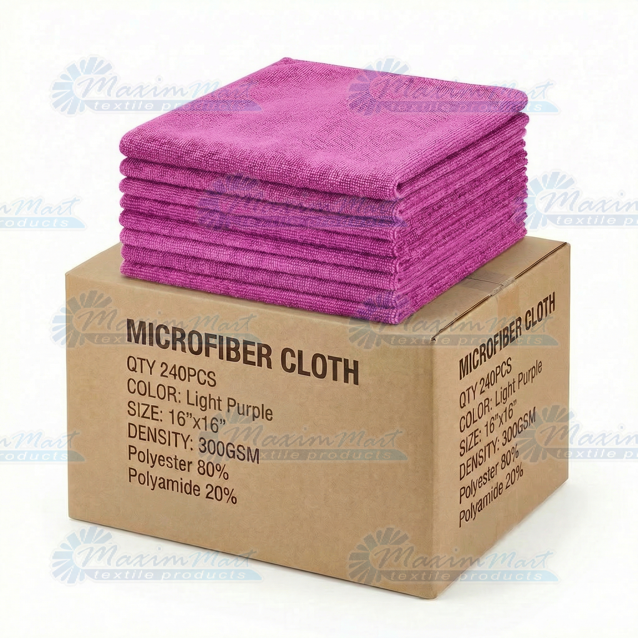 240 Ct. Box 16”x16” Microfiber Cloth, Professional Grade, 300GSM