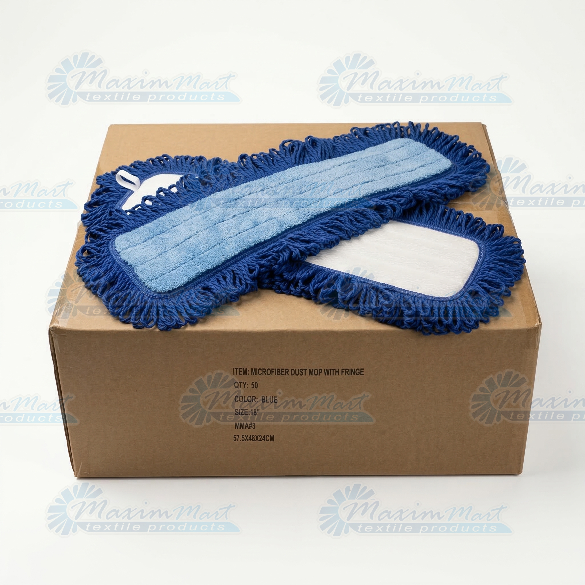 50 Ct. Box 18“ Microfiber Flat Dust Mop Pad with Fringe, 400GSM, Professional Grade, Hook & Loop
