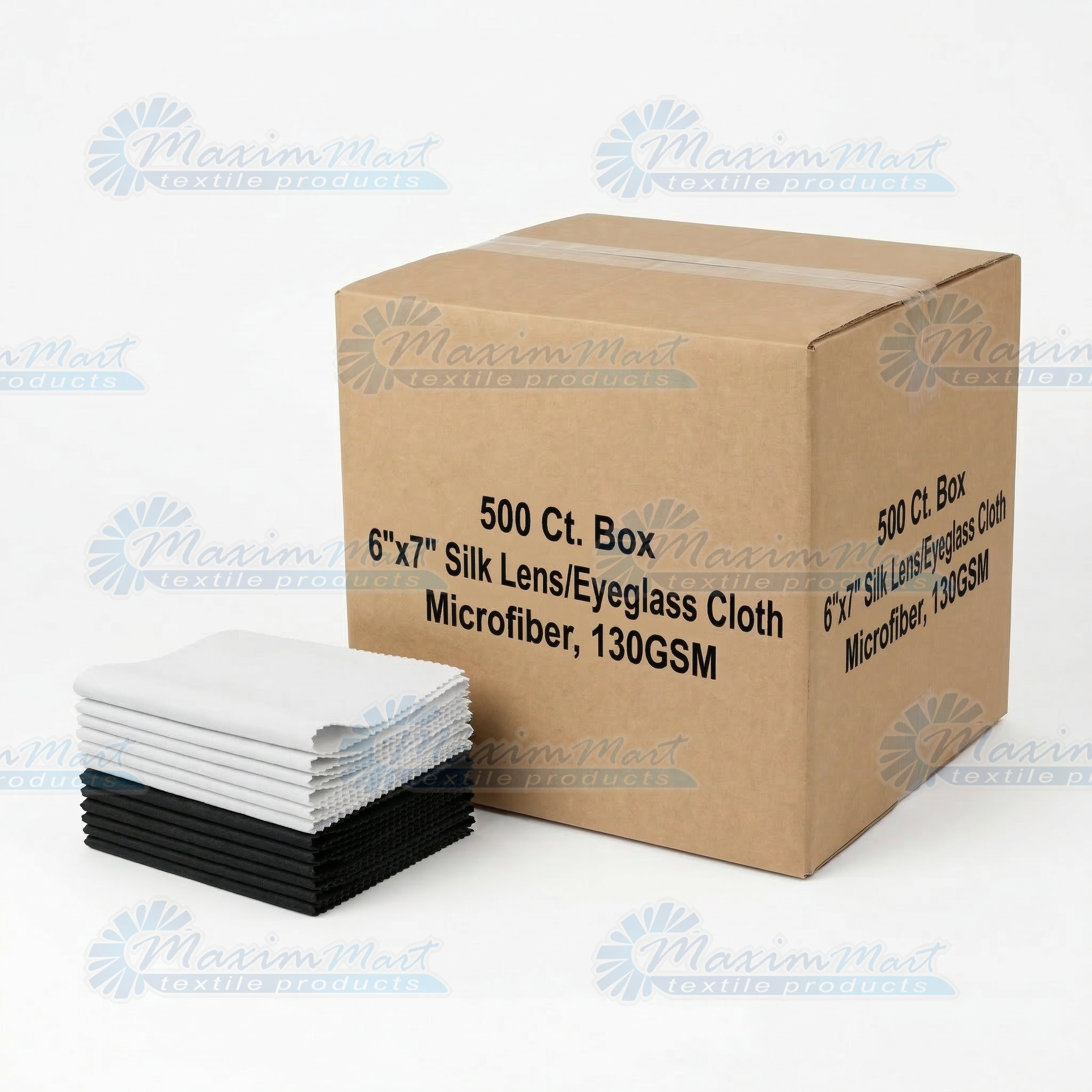 500 Ct. Box 6”x7” Silk Lens/Eyeglass Cloth, Microfiber, 130GSM