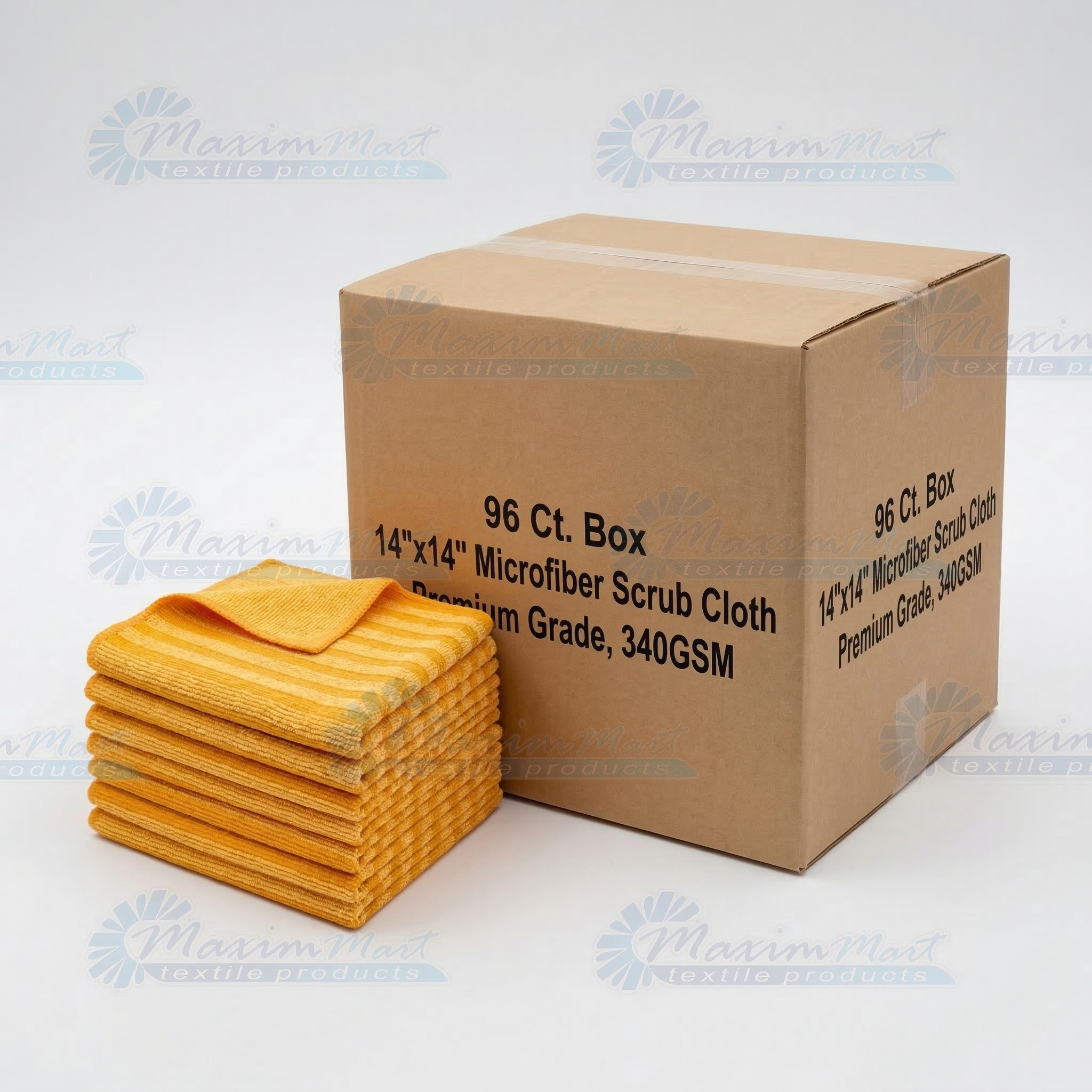 96 Ct. Box 14”x14” Microfiber Scrub Cloth, Premium Grade, 340GSM