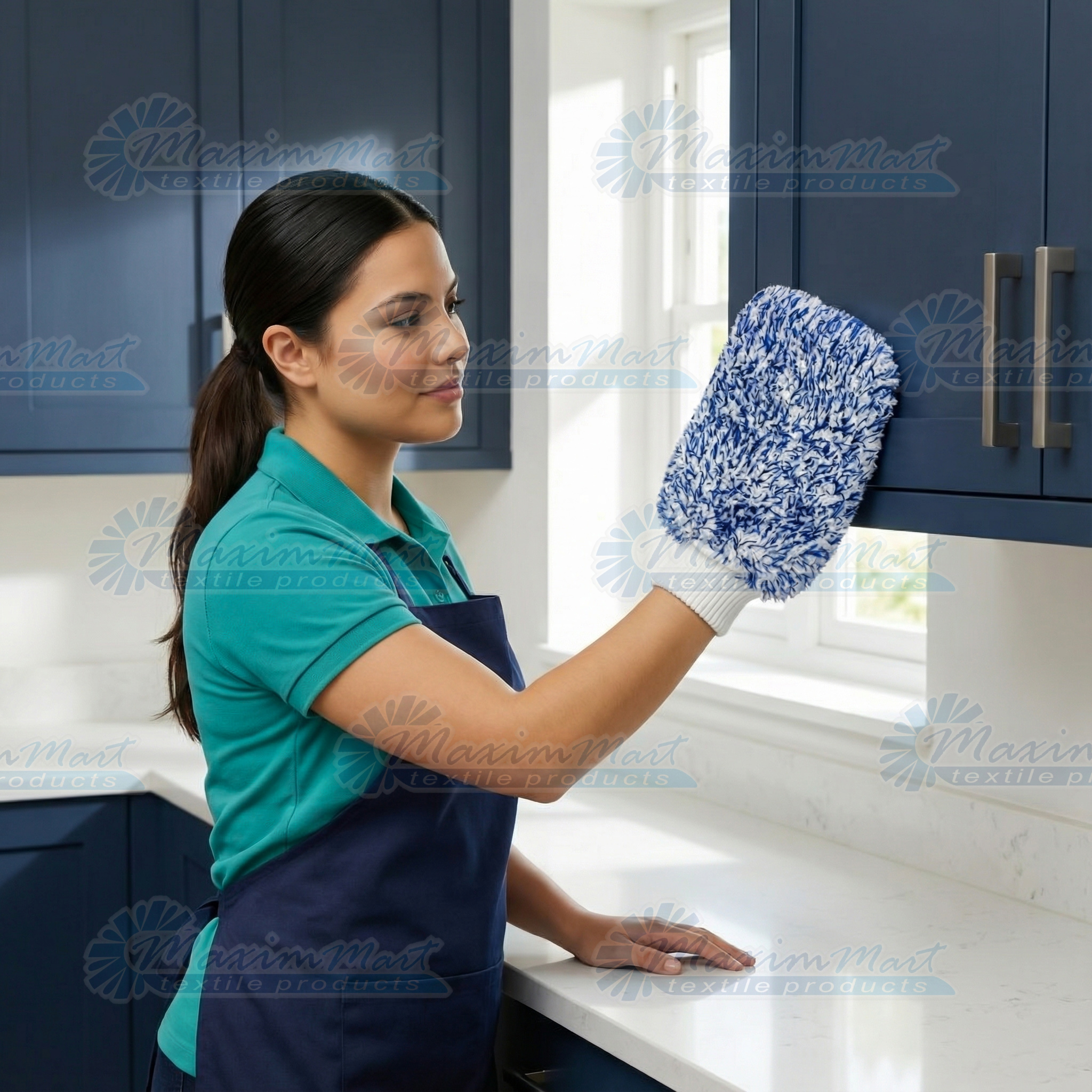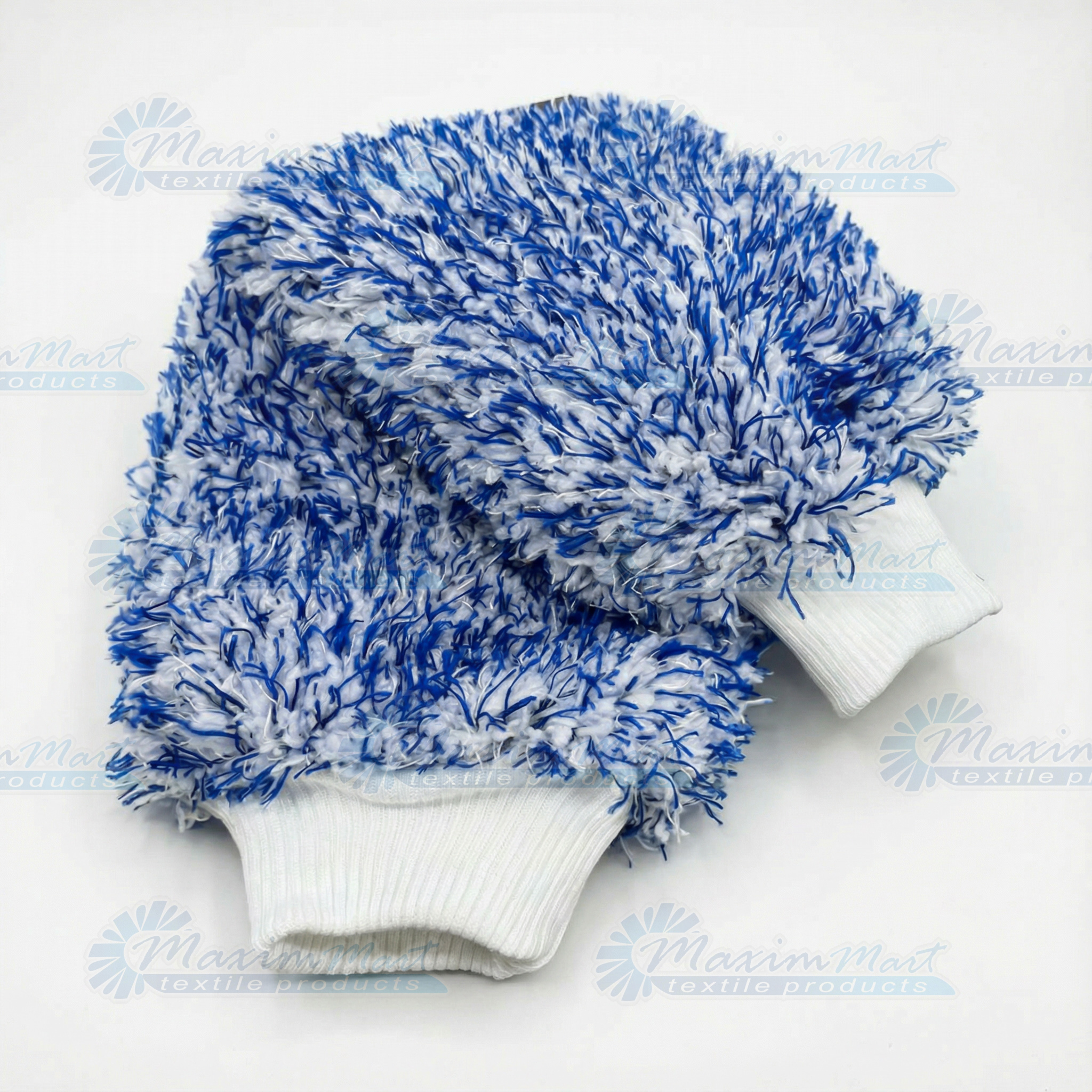 Microfiber Fuzzy Mitt, Professional Grade, 600GSM, White/Blue