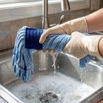 - Saturate the mop pad under the faucet.